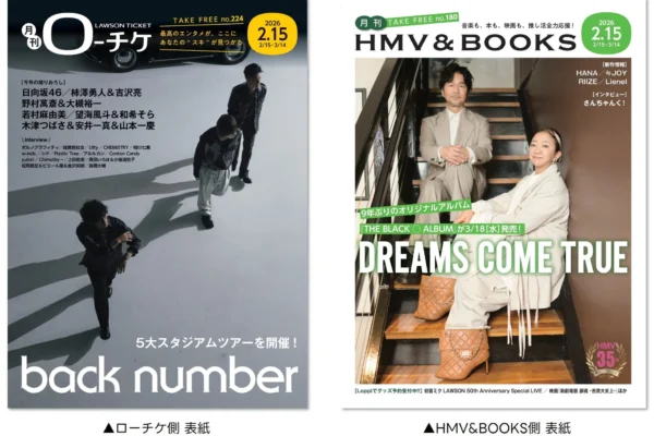 フリーペーパー『月刊ローチケ/月刊HMV&BOOKS』2月15日号が発行 back numberとDREAMS COME TRUEが表紙・巻頭特集に登場