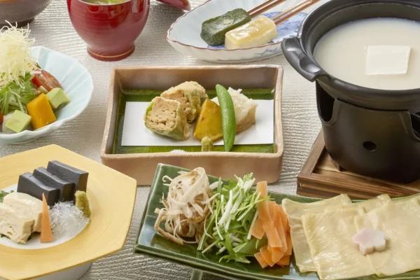 大豆と野菜を豊富に使用したヴィーガン対応の特別懐石料理です。出汁の旨味が際立つ「湯葉と野菜の豆乳しゃぶしゃぶ」や「吸物」を中心に、お品書きの一部が刷新されました。こだわりの豆腐料理に「MAGI DASHI 白だし」による力強いコクが加わり、ヴィーガンの方々だけでなく、健康志向の顧客にも心ゆくまでご満足いただける内容となっています。