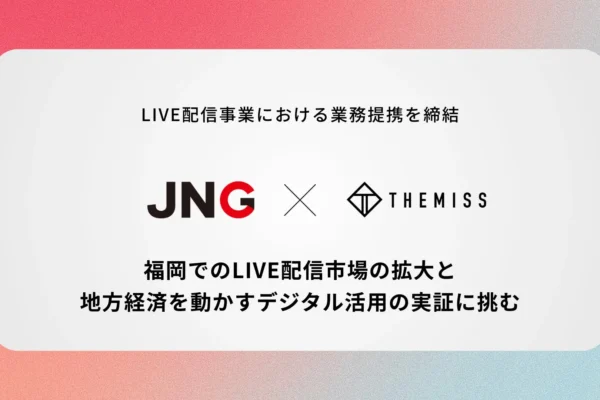 株式会社ジャパンネットワークグループ(本社:福岡県福岡市、代表取締役:齊藤拓也、以下JNG)と、ライブ配信オーディションの企画・運営に強みを持つ株式会社Themiss(本社:東京都港区、代表取締役社長:板谷 瞭太郎、以下Themiss)は、この度、ライブ配信オーディション事業における業務提携契約を締結いたしました。本提携は、急速に拡大するライブ配信市場において、特に福岡を拠点とした九州エリアにおける市場の活性化と、これまでにはなかった新たな価値の創出を目指すものです。