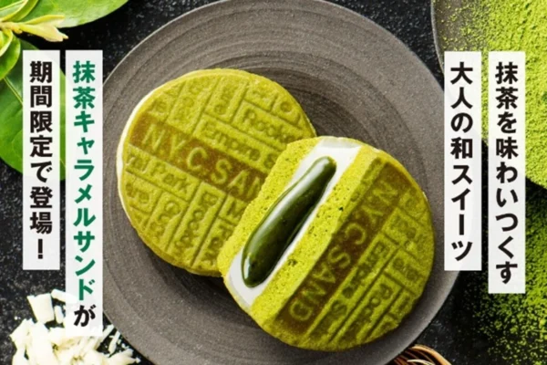 今回の期間限定出店で最も注目されるのは、「N.Y.抹茶キャラメルサンド」です。この商品は、繊細で心地よい苦みを持つ抹茶を贅沢に使用し、丁寧に仕上げられたキャラメルが特徴です。この抹茶キャラメルを、香ばしく奥深い味わいの抹茶クッキーと、上品な甘さのホワイトチョコレートで重ね合わせることで、一口ごとに豊かな風味のハーモニーが広がります。