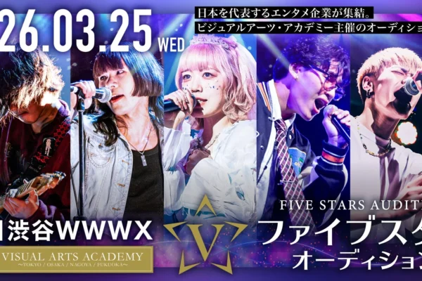 学校法人21世紀アカデメイア(学長:田坂広志、本部:東京都千代田区)が設置するエンターテインメントのイノベーション・カレッジ「ビジュアルアーツ・アカデミー」(所在地:東京都千代田区、ほか全国4校)は、2026年3月25日(水)、東京・渋谷のライブハウス「WWW X」において、全国の姉妹校から選抜された学生による大型オーディションイベント『FIVE STARS AUDITION 2026』を開催しました。このイベントは、次世代のエンターテインメント界を担う才能の発掘と育成を目指し、日本を代表するエンターテインメント企業約50社が審査に参加するという、学生最大級のデビューオーディションとして注目を集めました。
